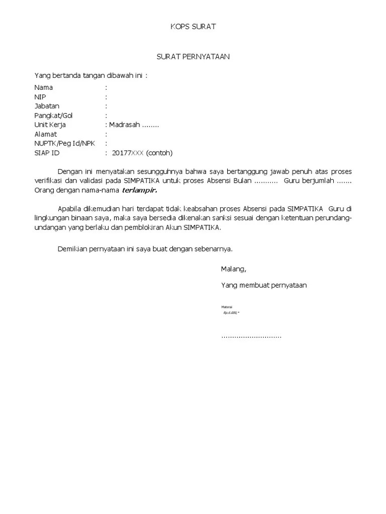 Ada banyak contoh surat pernyataan yang biasanya banyak digunakan, mulai dari surat pernyataan belum menikah, surat pernyataan diri, surat pernyataan menyesal, sampai dengan surat pernyataan kesanggupan. Ikhsan tempat tanggal lahir : Contoh surat pernyataan kesanggupan penempatan kerja. Kesanggupan kita dituangkan secara tertulis dengan mencantumkan data diri kita beserta jenis pekerjaan yang kita lakukan. Surat ini biasanya berisi beberapa hal yang mencakup kesanggupan berkaitan dengan bekerja lembur, bersedia dikontrak selama beberapa waktu, bersedia dinas luar kota, hingga sanggup untuk menjaga kode etik karyawan.