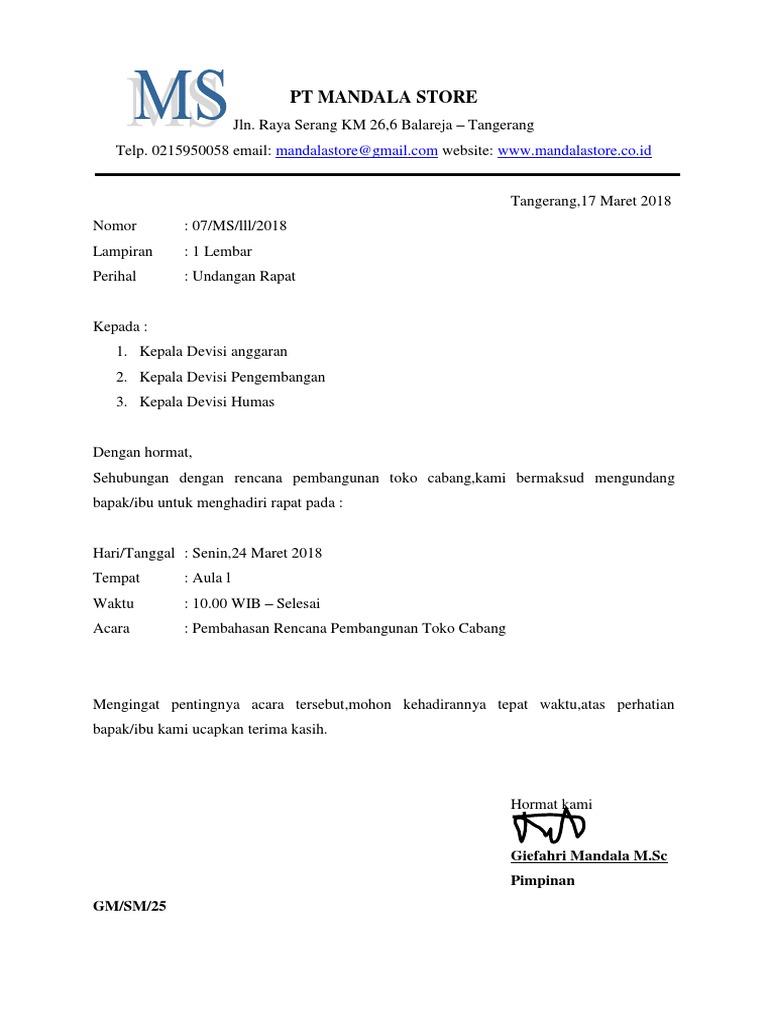 8 Contoh Surat Resmi Perusahaan Dan Organisasi Beserta Penjelasan from i2.wp.com Berikut ini telah kami lampirkan beberapa contoh surat undangan rapat, yang bisa menjadi. Atas perhatian dan kerja sama bapakibu kami ucapkan terima kasih. Rapat tersebut bisa bersifat internal maupun eksternal perusahaan. Contoh surat undangan acara rapat pemuda pancasila format doc. Rapat memang memiliki peranan yang sangat besar dalam sebuah organisasi ataupun perusahaan. Contoh agenda rapat untuk pembukaan cabang baru berjualan makanan contoh bisnis sampingan malam hari banyak pebisnis yang gagal di awal pembukaan bisnisnya untuk pertama kali. Contoh standar operasional prosedur sop pembukaan rekening bank cabang perusahaan terdiri dari berikut ini. The collection that consisting of chosen picture and the best among others.